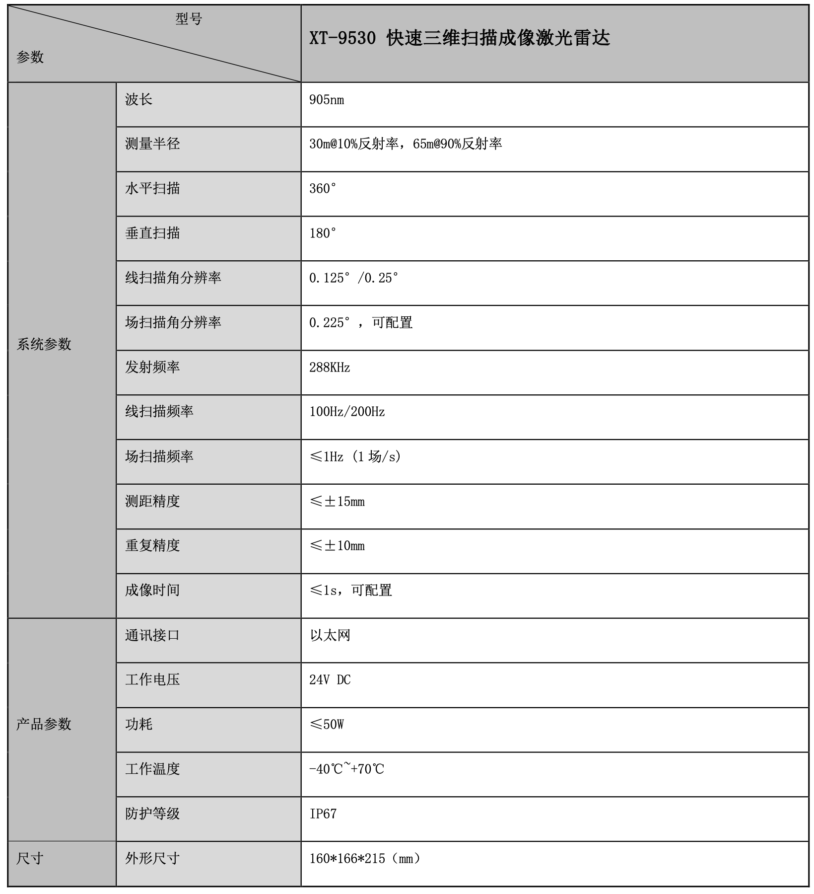 XT-9530 具备快速三维扫描功能,能够在短时间内获取目标物体的三维信息。其在 30 米距离且 10%反射率的条件下,依然可以实现高效、准确的扫描。这一特性使得它在矿车列车自动装车等场景中,能够迅速捕捉车辆的相关信息,大大提高了工作效率。